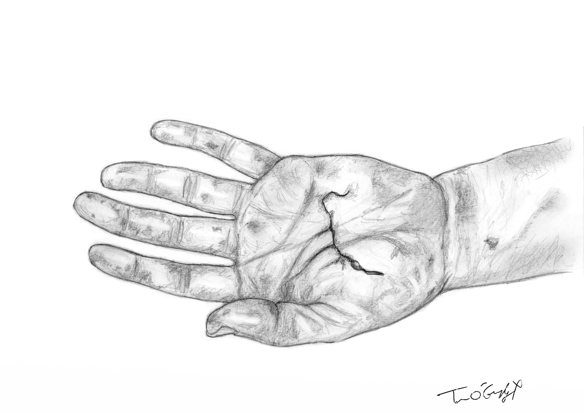 Cependant cette éventualité est très rare car dans le mécanisme pathologique, sidans les plaies de la face palmaire des doigts on peut voir le couteau glisser et finir sa course de façon tangentielle au doigt, quand c’est seulement la paume qui est entaillée, on s’attend plutôt à ce que l’arme ait fini sa course dans la profondeur de la paume.