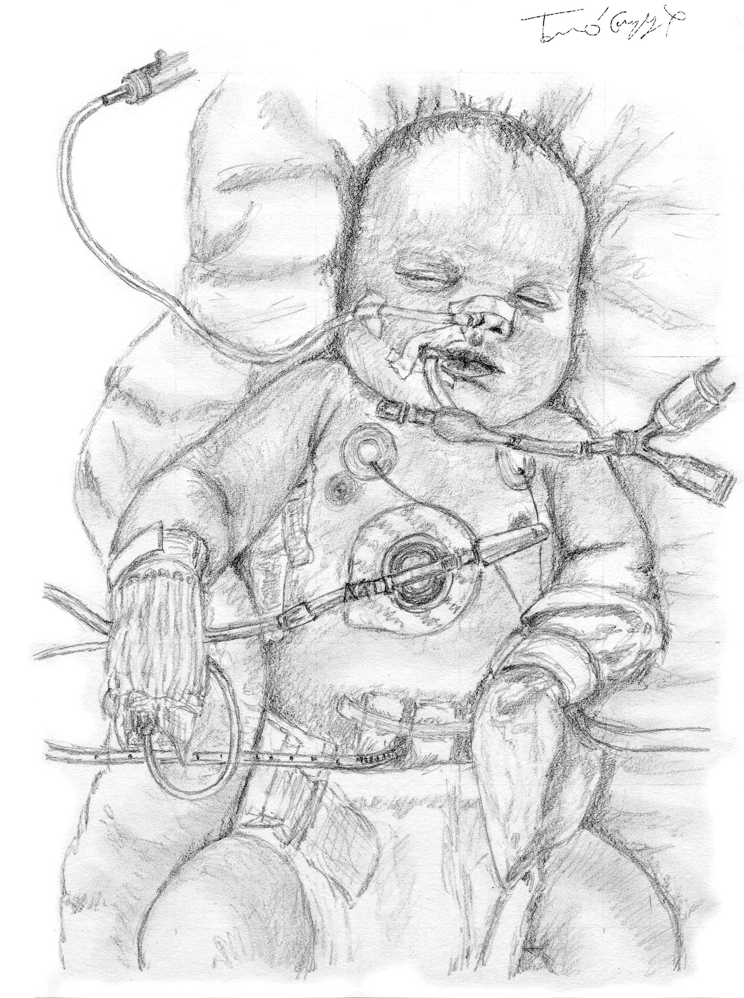 nouveau-né en réanimation pédiatrique, opéré d’une atrésie de l’oesophage et porteur d’une gastrostomie