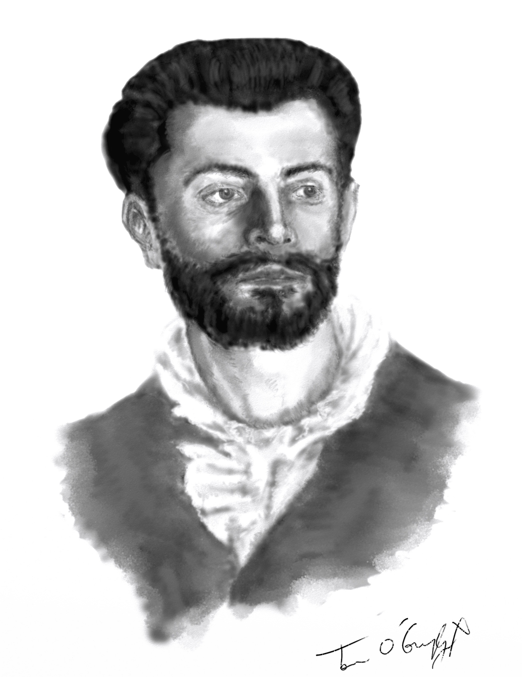 Avec un certain degré de narcissisme (même si à cette époque il était relativement fréquent de se faire représenter en peinture … quand on en avait les moyens !), il posa pour une toile du peintre anglais John Singer Sargent. Le tableau , dans un style académique mais très bien réalisé, le représente de façon plus que flatteuse, voire kitsch de nos jours.
