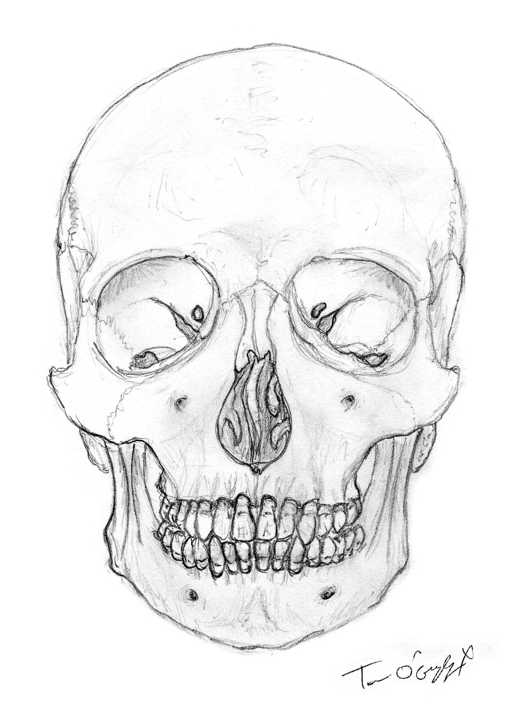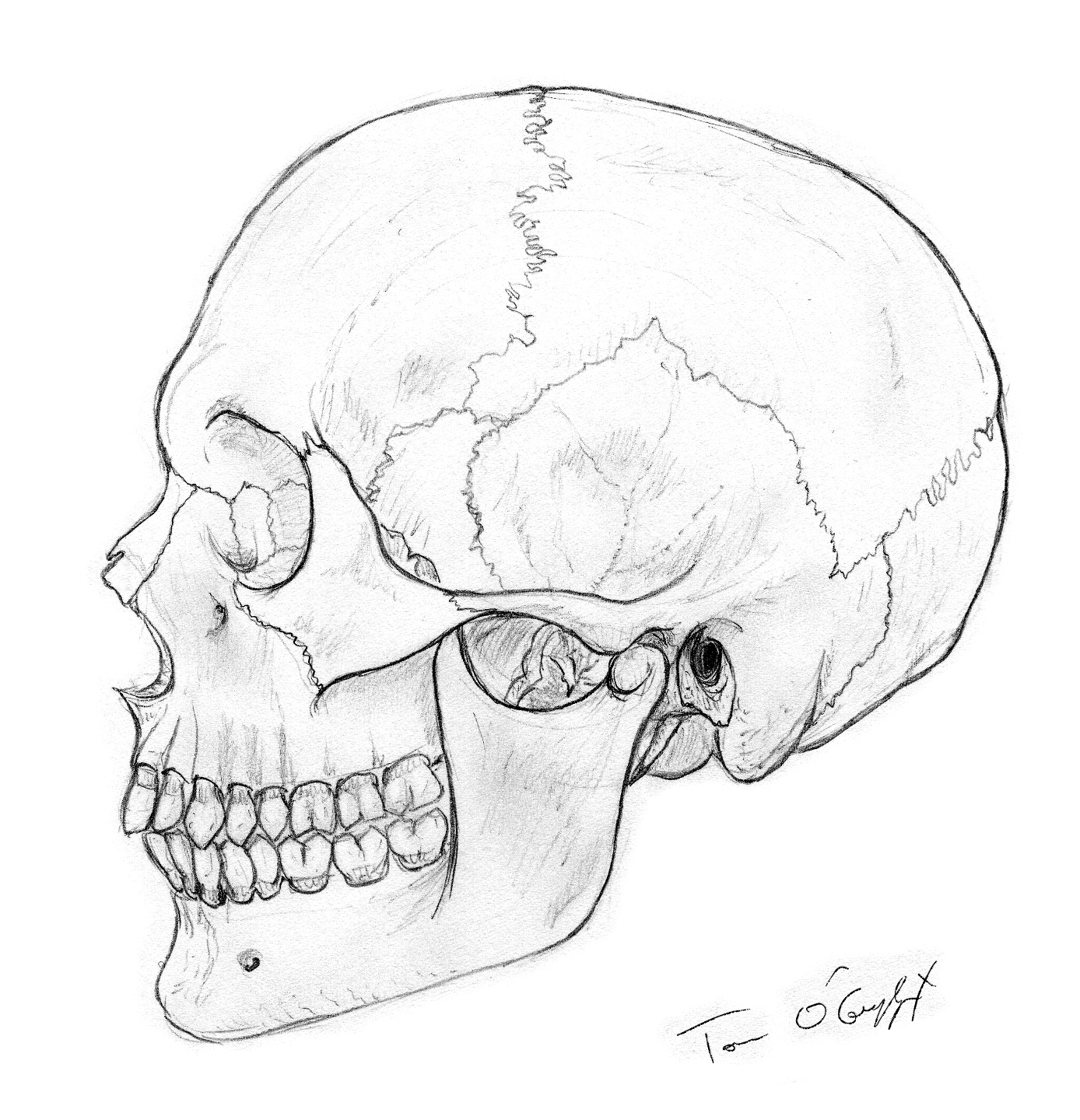 C’est en voyant différents crânes récents que je me suis dit qu’il fallait en refaire et surtout à la tablette graphique. J’en ai fait 2 vues qui datent de plus de 10 ans maintenant au crayon graphite, et même s’ils tiennent encore la route, ce n’est pas la meilleure version que je pourrai faire d’une tête humaine (dessin de contour trop marqué). J’avais fait aussi un gros plan sur l’orbite osseuse.